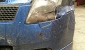 Beskrivelse: Ramlede desværre ind i noget sne og et autoværn.