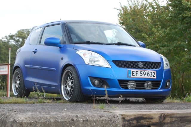 Beskrivelse: Hejsa her min swift jeg har malet med Plasti dip i World rally blue og neon gule vinter fælge
